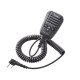 Microfono de mano con control remoto. Conector RJ45 de 8 pin para equipos base HF, con teclado retroiluminado. Su teclado numerico permite seleccionar los canales de forma rapida. Ademas se puede seleccionar la banda de trabajo con las mismas teclas numericas. las teclas F-1 y F-2 se pueden programar para tener accesos directos a funciones.